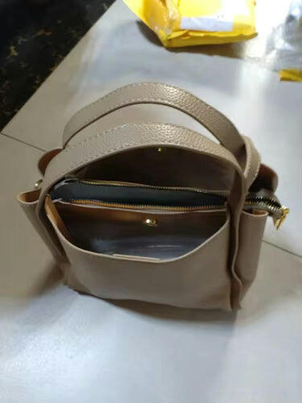The shoulder bag and its color matched exactly what the seller showed. It has an adjustable strap and came with a white pouch for storage. There was a slight smell, but it went away after airing it out. The size is sufficient for small items. I’m gifting it and hope my friend likes it too.