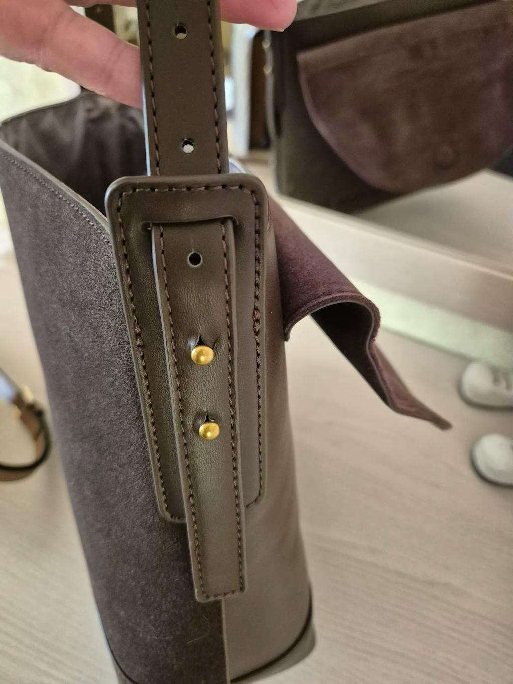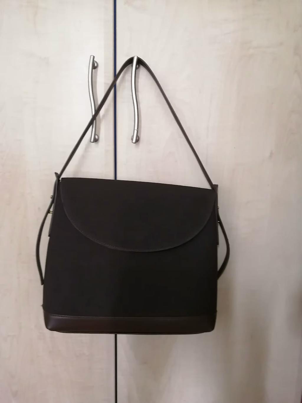 An elegant bag crafted from soft suede material. Its classic form adds practical sophistication to your daily life!