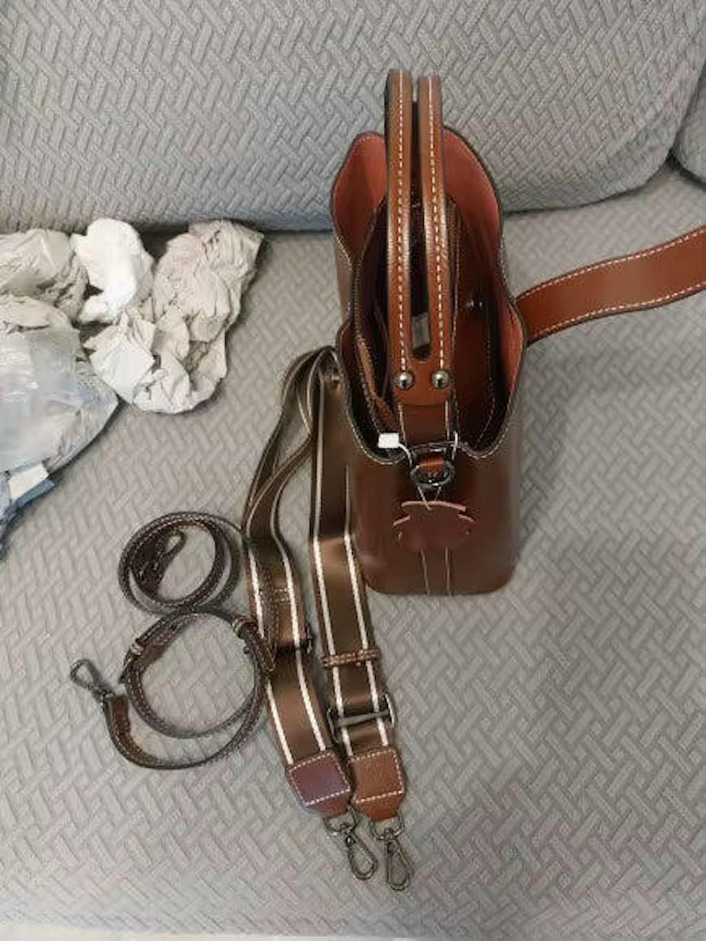 I’m satisfied with the bag; the quality is good, stitching is straight, it has 2 straps, looks great, and holds capacity well. Very happy. Thanks to the seller.