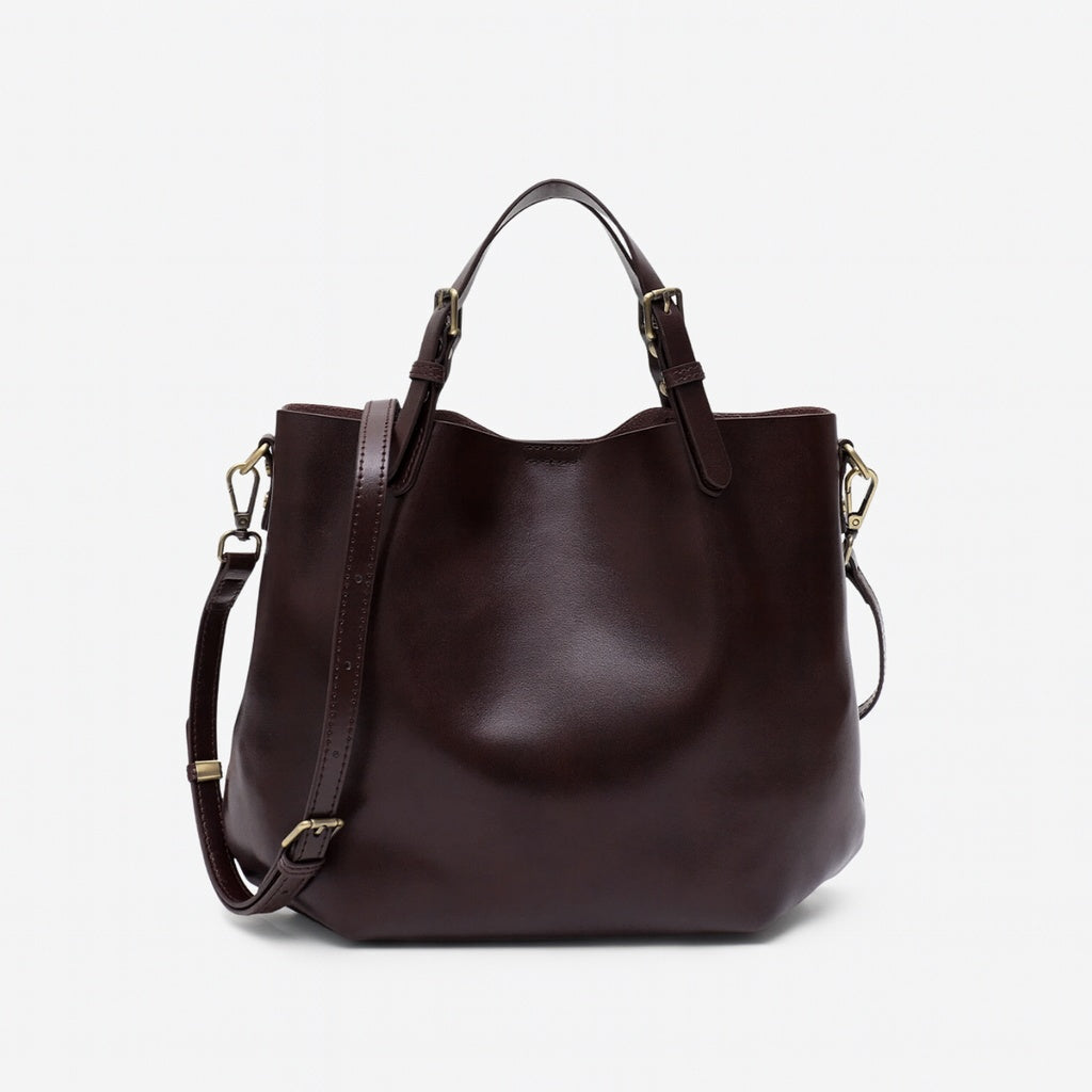 Klasik zarafeti modern sadelikle buluşturan gerçek deri tote çanta. Vintage esintili minimalist tasarımı, üst saplı ve çapraz askı seçenekleriyle kullanım kolaylığı sunar. Fermuarlı astarıyla eşyalarınızı güvenle taşıyabilirsiniz. Düz renk seçenekleriyle her tarza uyum sağlar. İster ofiste ister günlük gezilerde, şıklığınızdan ödün vermeden kullanabileceğiniz zamansız bir aksesuar!