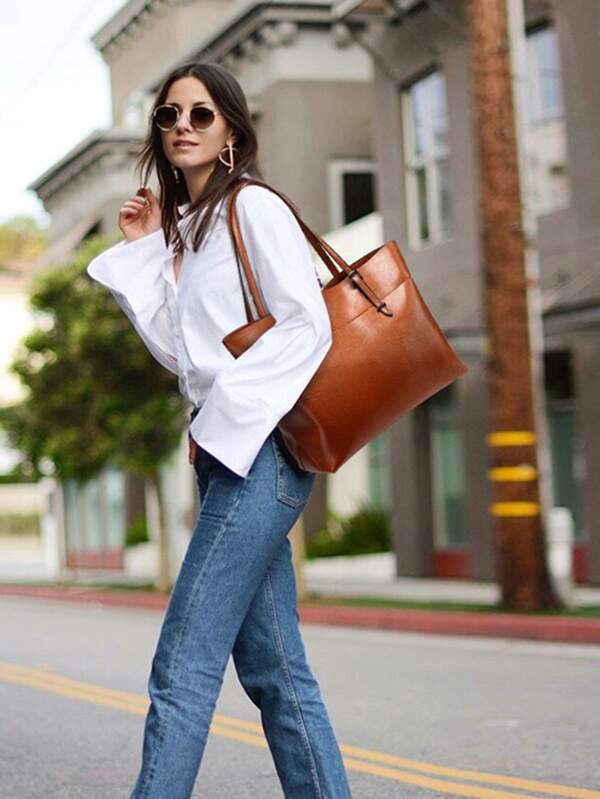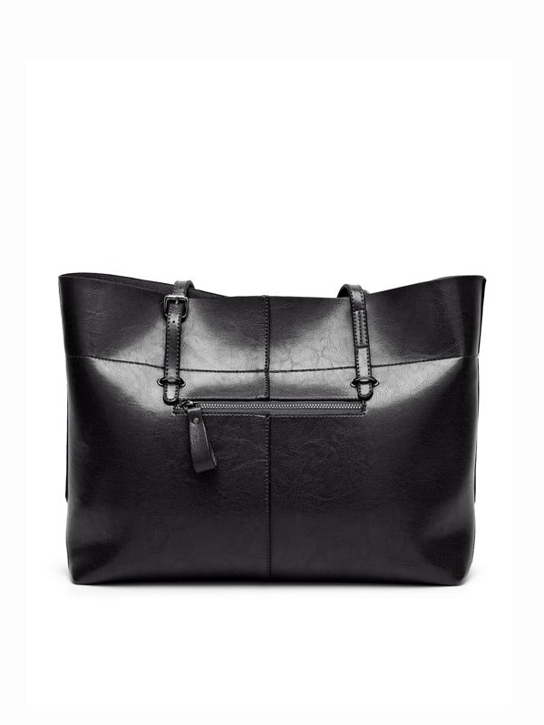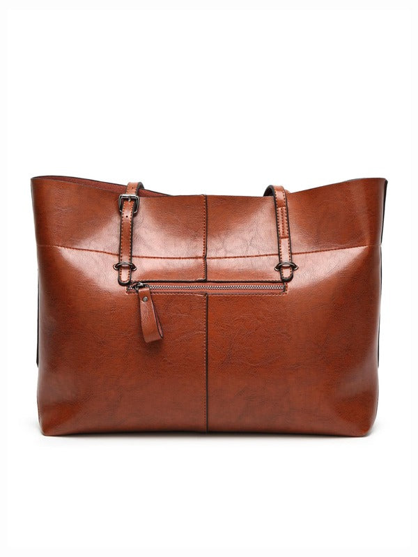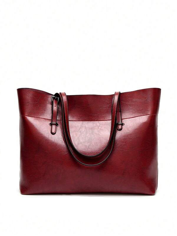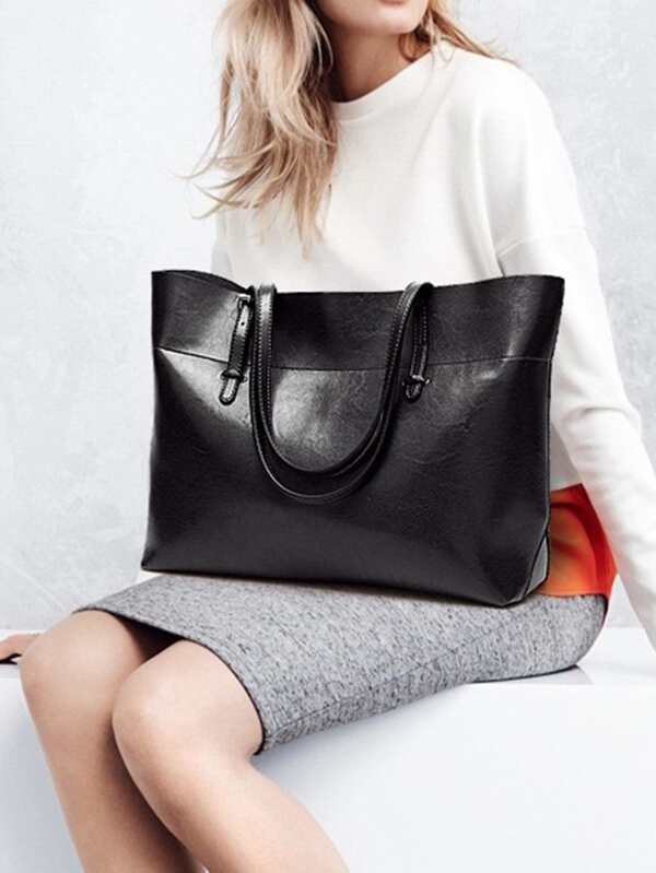 Şık yağlı deri dokusu ve minimalist tasarımıyla bu büyük kapasiteli tote çanta, iş kadınları ve öğrenciler için mükemmel bir seçim. Günlük kullanımda şıklığınızı tamamlayacak göz alıcı bir aksesuar!