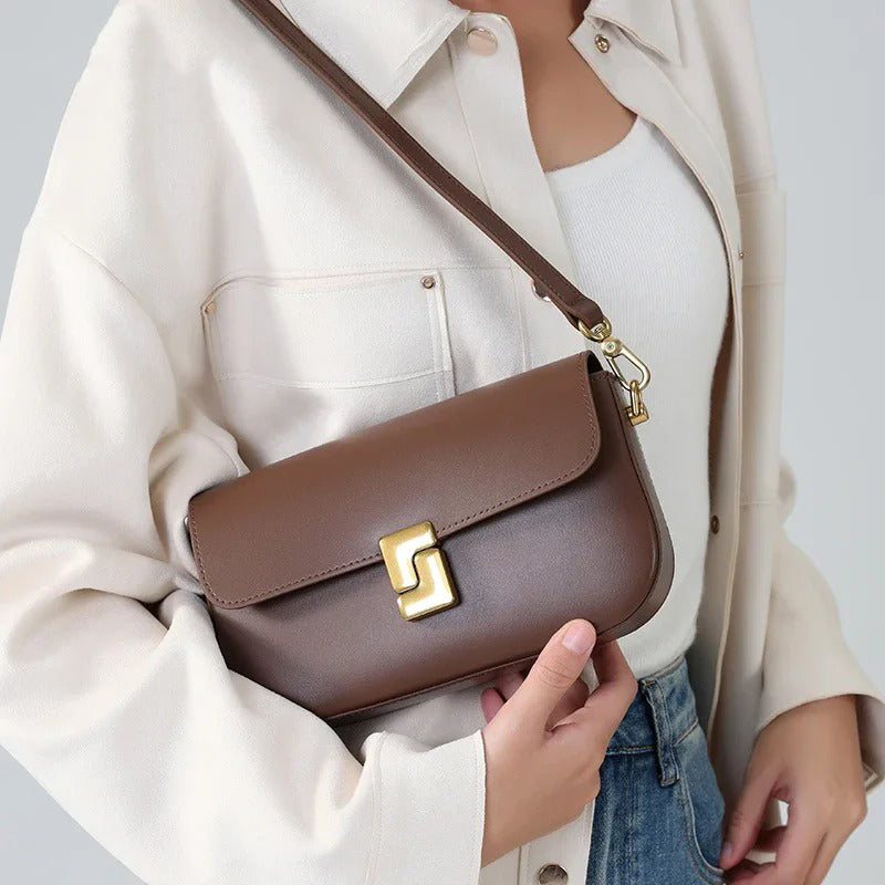 Küçük dikdörtgen formlu messenger çanta. Deri tasarımıyla lüks ve avangart bir stil sunuyor. Günlük şıklığınızı tamamlayacak özel bir tasarımcı parçası!