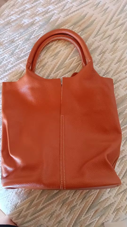 Teslimat hızlıydı ve çanta gerçekten deriydi. Ne yazık ki tarzı hoşuma gitmedi. Keşke kulpları biraz daha uzun olsaydı. Yine de çantaya 5 veriyorum çünkü ürün açıklaması tamamen doğruydu. Satıcı da tam para iadesi için geri göndermeme izin verdi, bu yönüyle çok memnun kaldım.