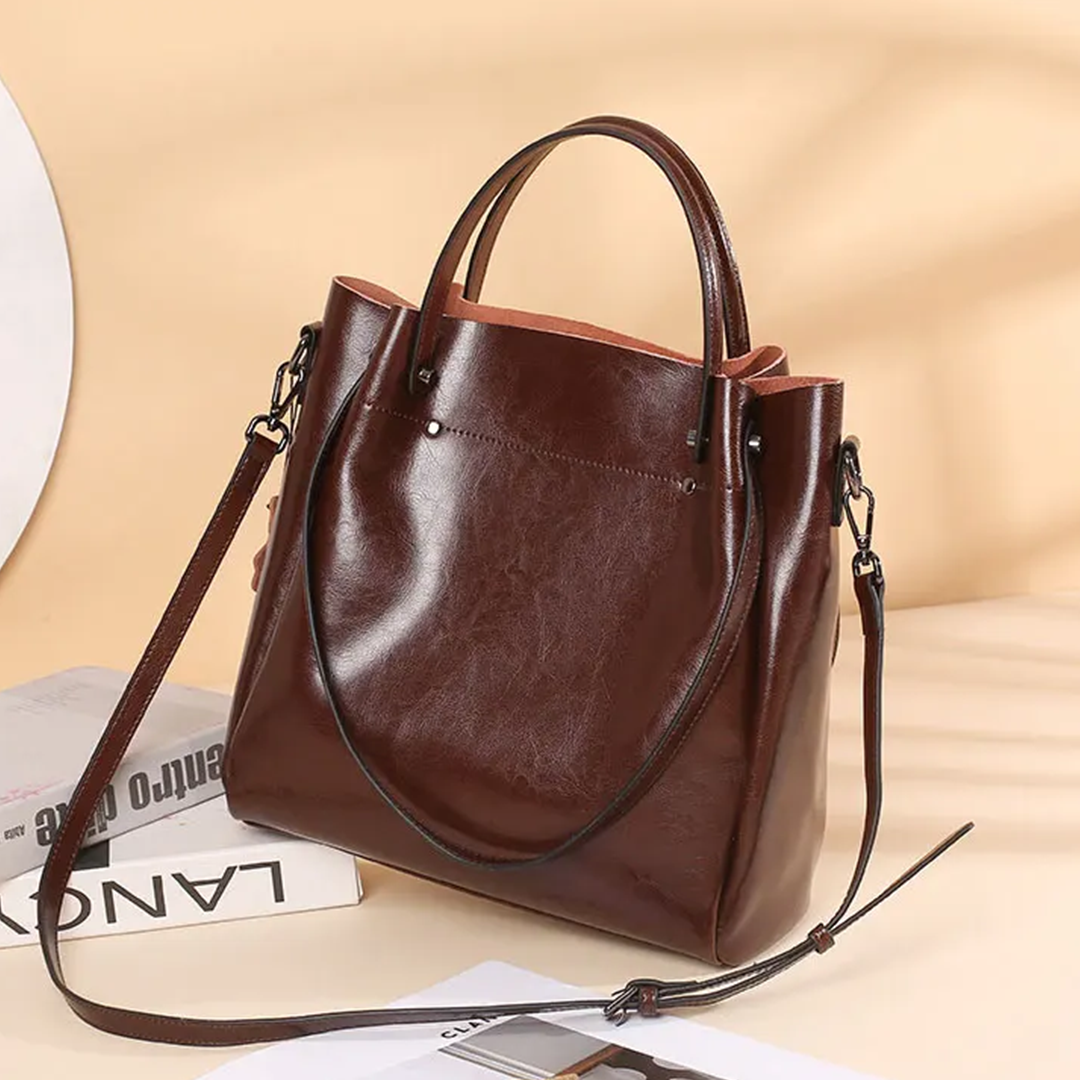 %100 inek derisinden üretilmiş tote çanta. Şıklık ve dayanıklılığı bir arada. Geniş iç hacmi sayesinde günlük tüm eşyalarınızı rahatça taşıyabilirsiniz. Buruşuk dokusu ve modern kesimiyle dikkat çeker. Hem iş hem günlük kullanım için ideal.