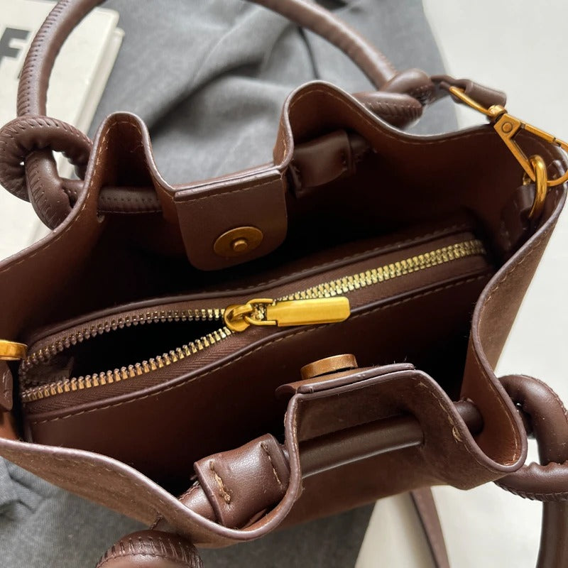 Özel buzlu efekt deri kova çanta, kat detaylı tasarımıyla retro-modern bir hava sunuyor. Premium işlenmiş derisi ve ayarlanabilir askısıyla hem şık hem de fonksiyonel bir taşıma deneyimi vaat ediyor.