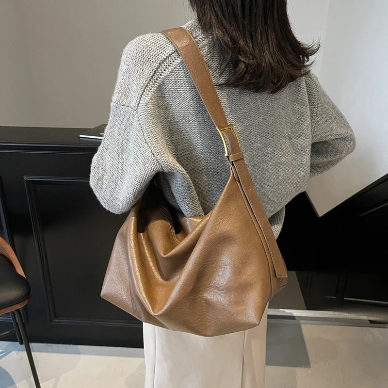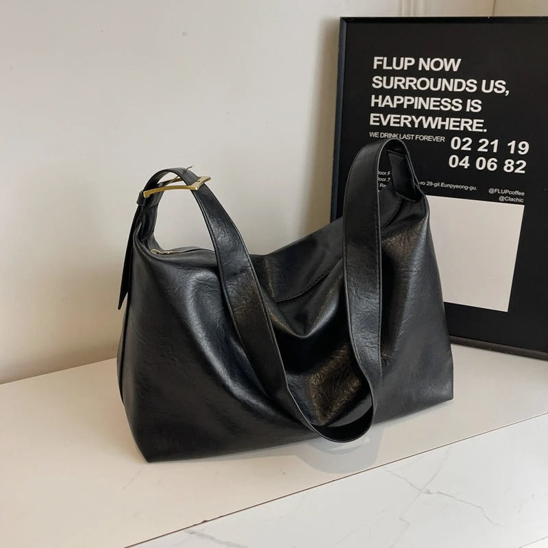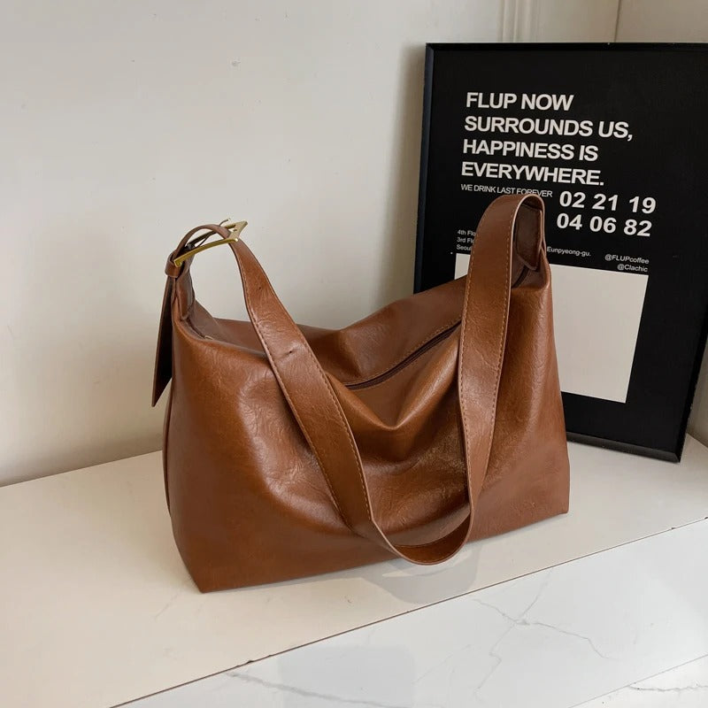Şık toka detaylı, düz renkli suni deri omuz çantası, geniş hacmi ve yumuşak yapısıyla günlük kullanım için ideal. Modayı takip eden kadınlar için pratik ve şık bir seçim!