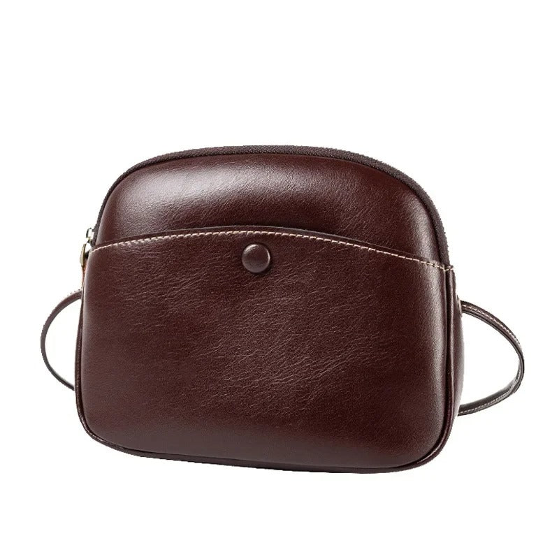 The material is soft and looks elegant; the genuine leather quality is really good. The stitching is strong, and the bag has a very stylish look that goes with any outfit.