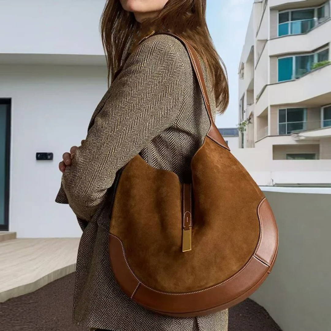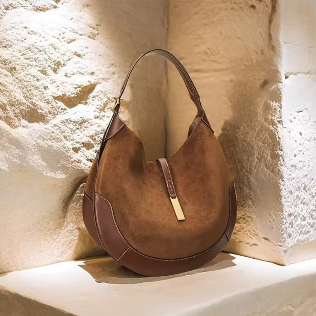 Yüksek kaliteli süetten üretilen çanta, lüks bir his ve klasik bir görünüm sunuyor. Hilal şekli onu hem şık hem de pratik kılarken her kıyafete sofistike bir dokunuş katar. Gece buluşmaları, özel davetler, günlük ofis/iş hayatı ve şık alışveriş gezintileri için dikkat çekici bir seçim.