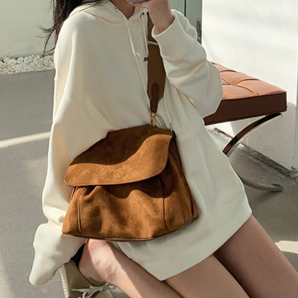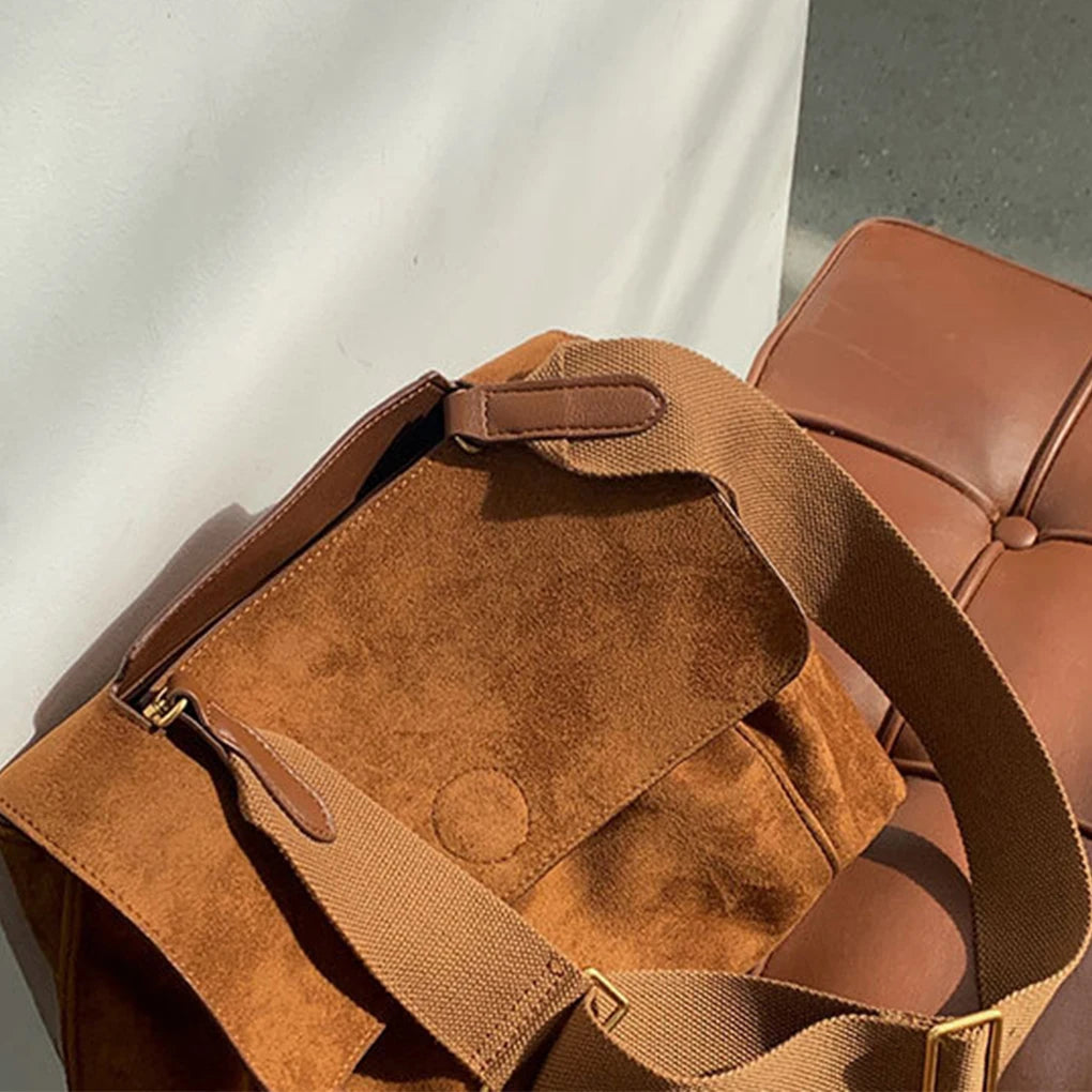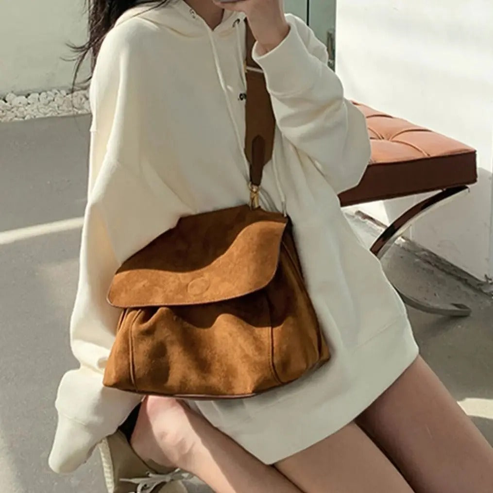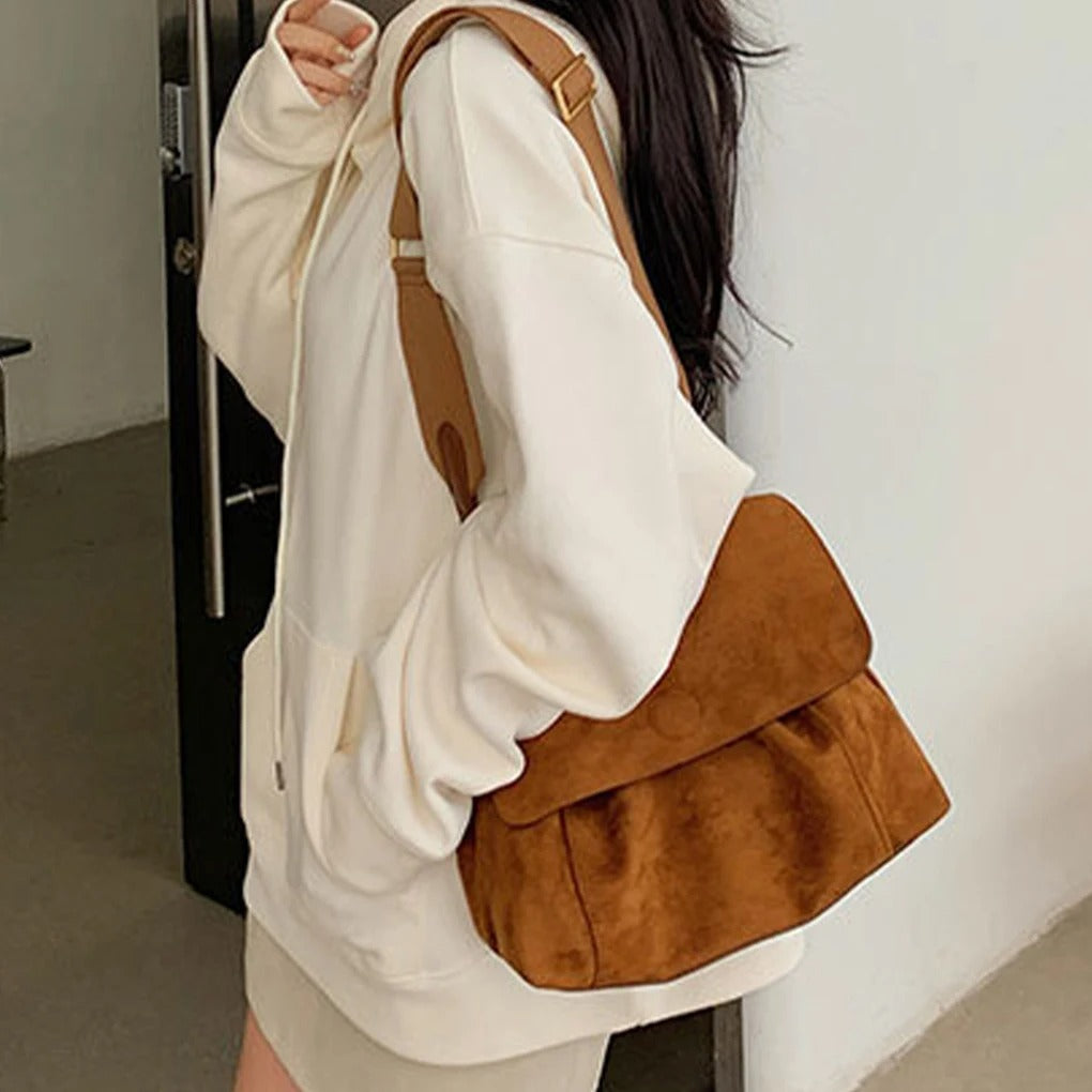 Retro tarzı ve şık dokusuyla öne çıkan Süet Crossbody Tote Çanta, sonbahar ve kış gardıroplarınıza sıcak bir dokunuş katıyor. Buzlu kahverengi rengi ve yumuşak süet malzemesiyle hem göz alıcı hem de dayanıklıdır. Geniş iç hacmiyle günlük ihtiyaçlarınızı rahatça taşıyabilir, crossbody (çapraz askı) veya omuz askısıyla farklı şekillerde kullanabilirsiniz. Tasarımcı dokunuşuyla detaylandırılan bu çanta, hem günlük hayatta hem de özel günlerde şıklığınızı tamamlayacak. Minimalist çizgileri ve fonksiyonel yapısıyla her kadının koleksiyonunda bulunması gereken bir parça!