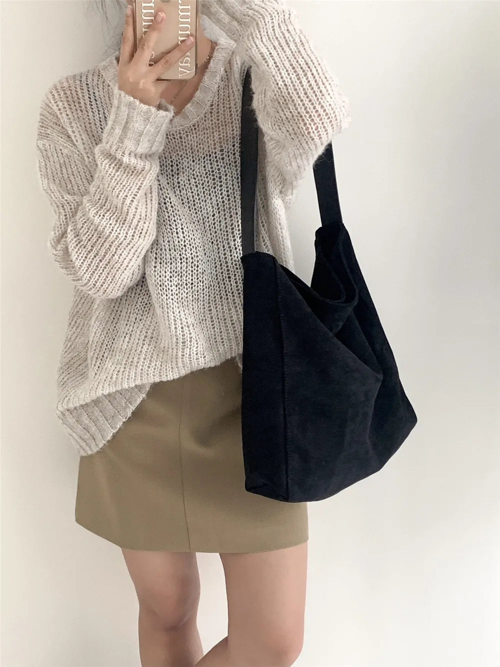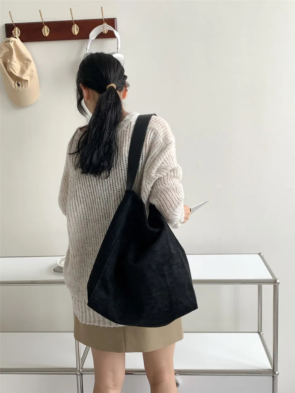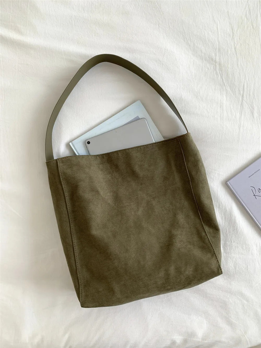 Düz renkli süet, büyük kapasiteli tote çanta. Minimalist tasarımı ve çok yönlü kullanımıyla günlük yaşamınıza şıklık katıyor. Rahat fırça dokusuyla hem görsel hem de dokunsal bir deneyim sunar!