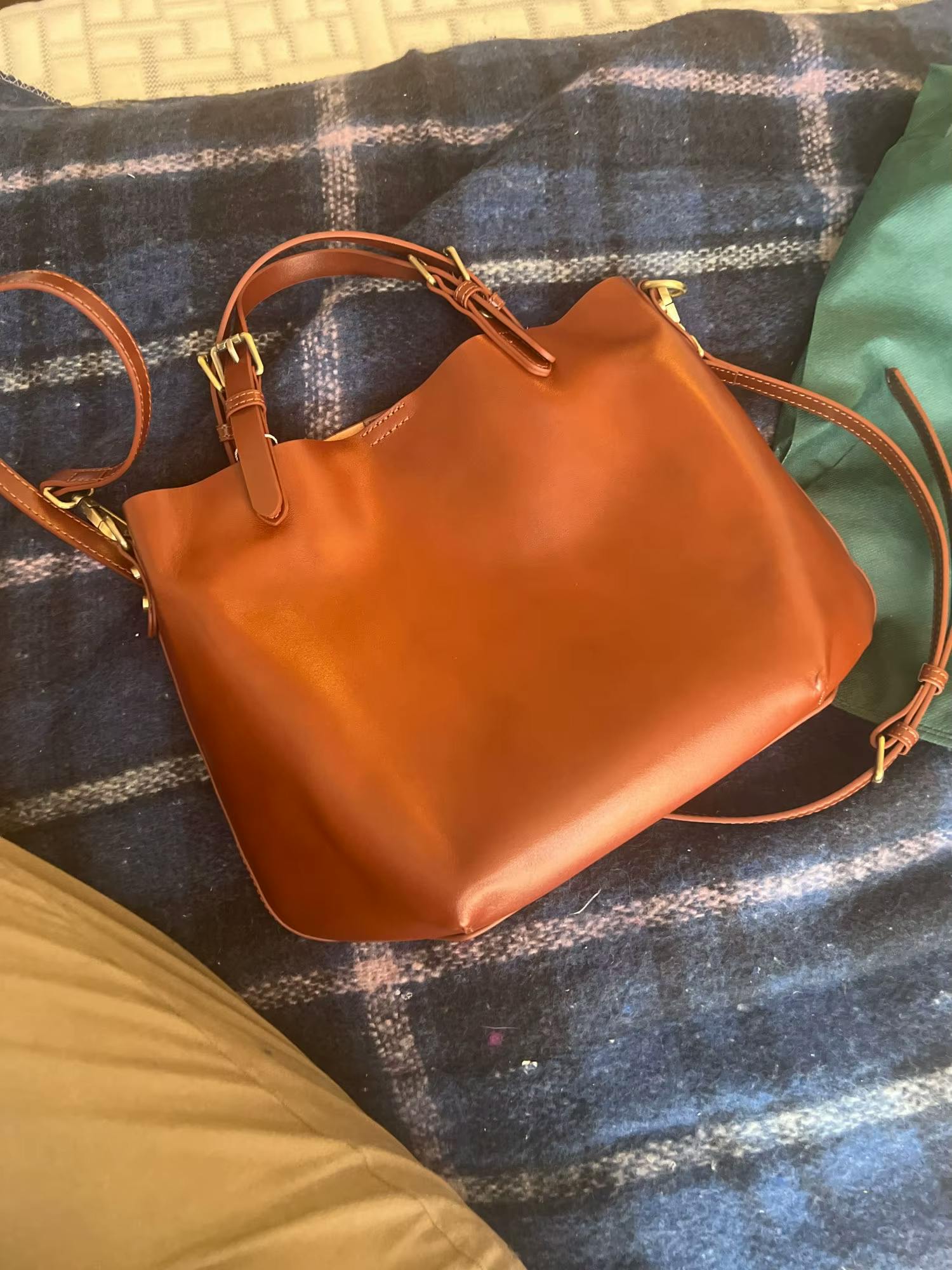 Un bolso tote de piel auténtica que combina la elegancia clásica con la sencillez moderna. Su diseño minimalista de inspiración vintage ofrece gran comodidad gracias a su asa superior y correa cruzada. El forro con cremallera permite guardar tus pertenencias de forma segura. Disponible en colores lisos para complementar cualquier estilo. Un accesorio atemporal que puedes usar tanto en la oficina como en tus salidas diarias sin renunciar a la elegancia.