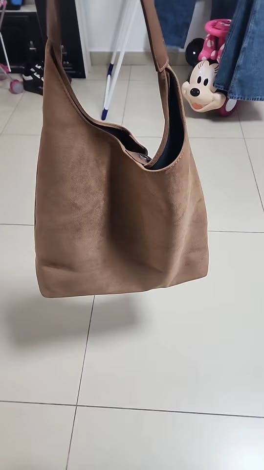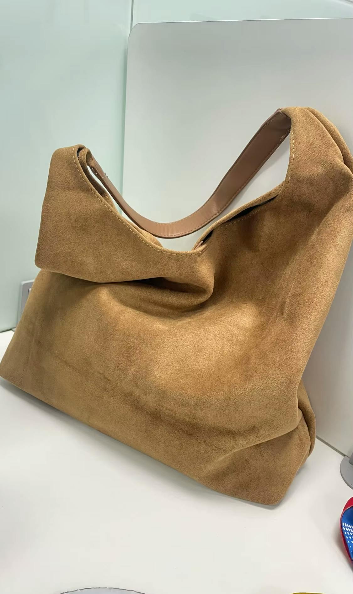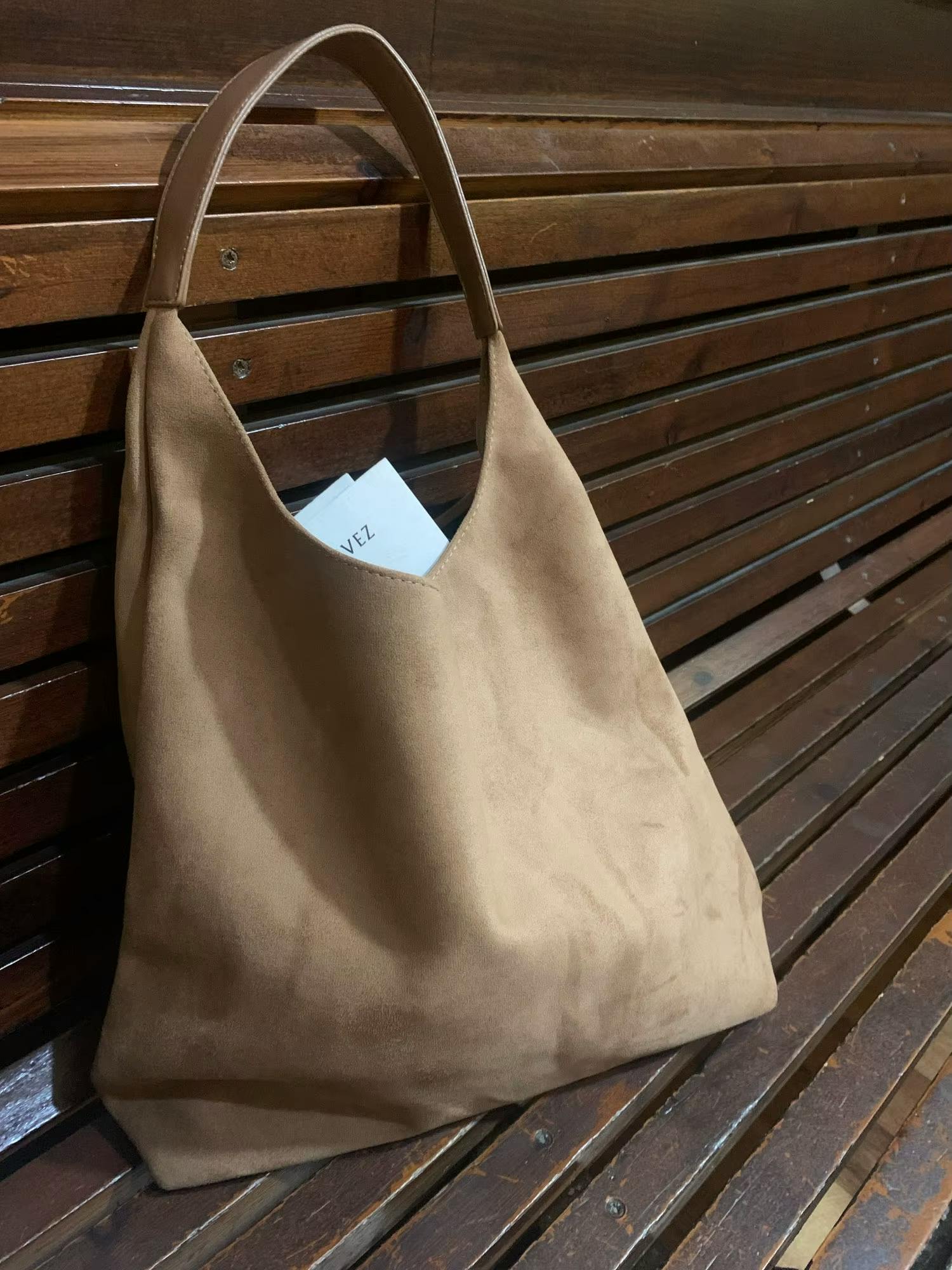 Este bolso de ante de gran capacidad combina la elegancia de las estaciones frías con un estilo retro atemporal, aportando practicidad y sofisticación a tu día a día. Su textura suave, sus bolsillos amplios y su clásica silueta hobo lo convierten en un accesorio imprescindible. Incluye un neceser interior.
