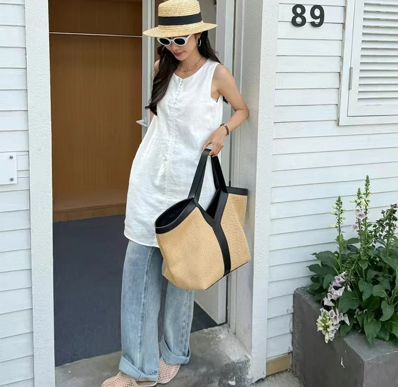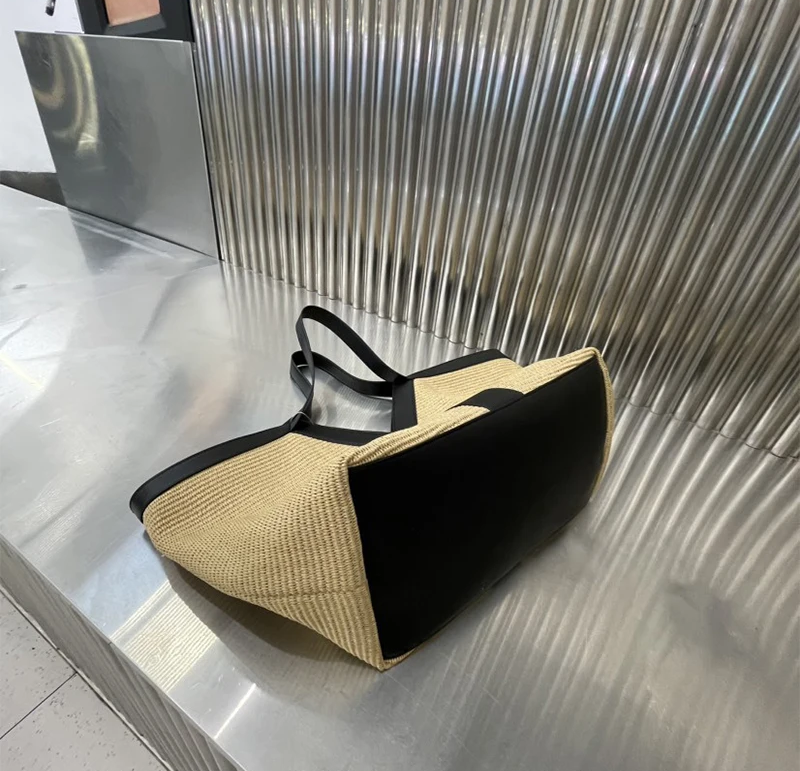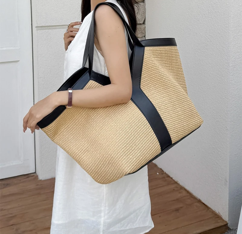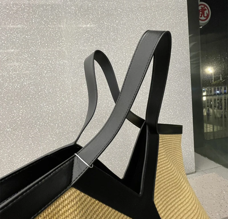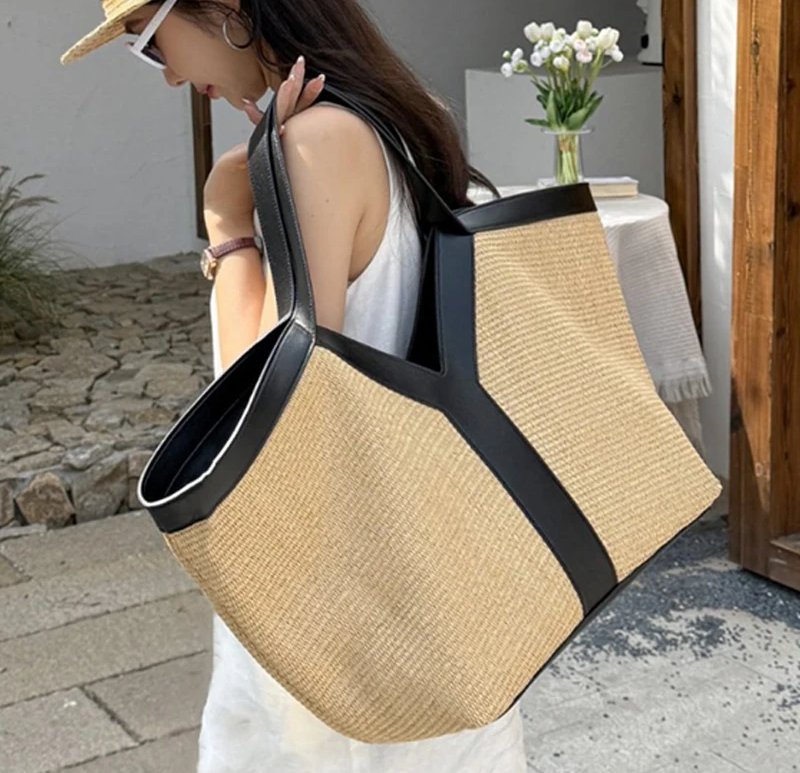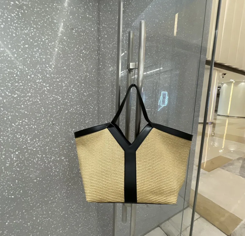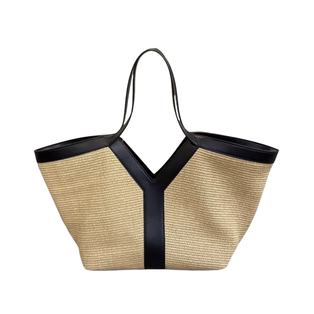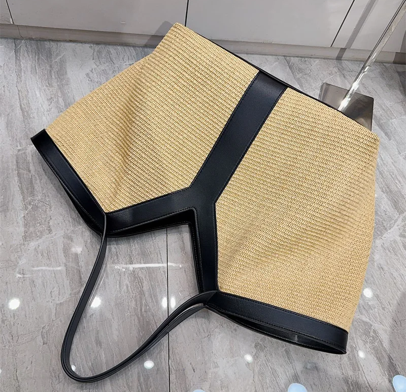 Y-şekilli tasarıma sahip saman dokulu çanta. Plaj, tatil ve günlük kullanım için ideal! Doğal görünümü ve büyük kapasitesiyle tüm eşyalarınızı şık bir şekilde taşımanızı sağlar. Modern ve modaya uygun dokunuşuyla plajda bir gün veya alışveriş çılgınlığı için mükemmel bir seçenek.